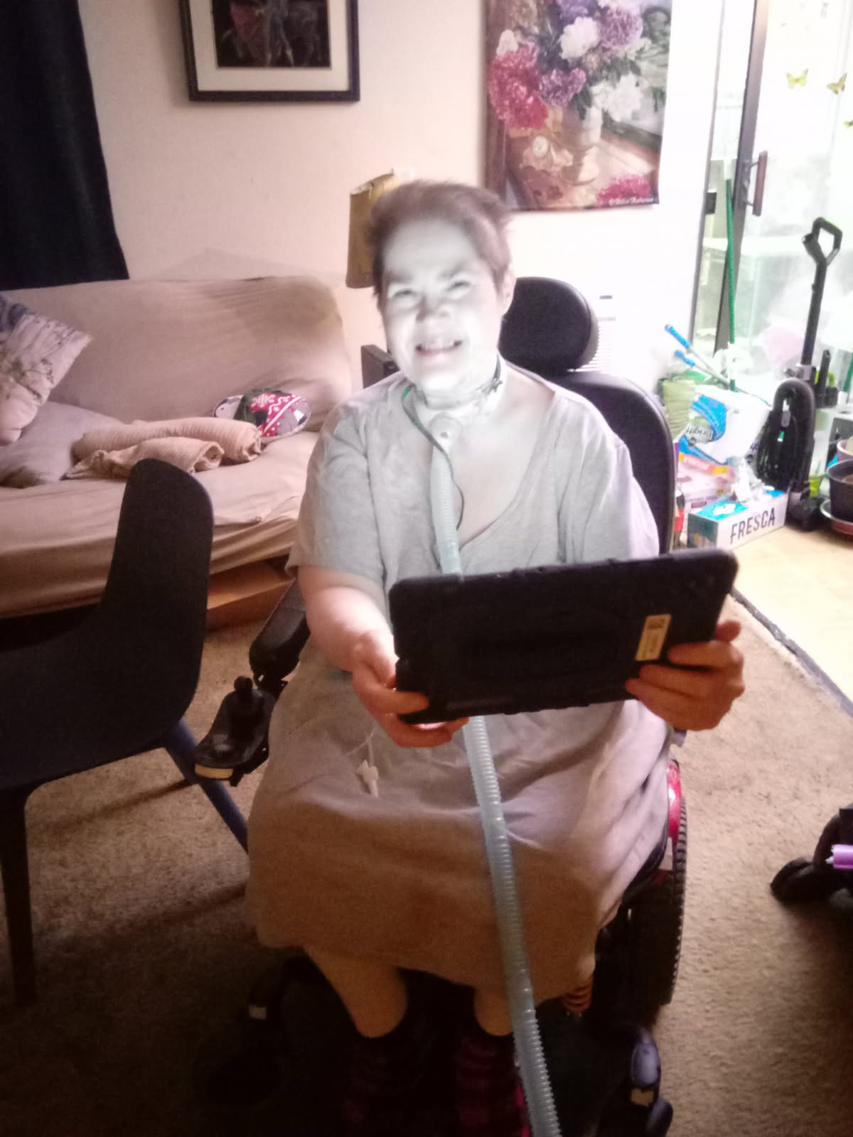 I have been in the process of grieving the loss of my voice. Although, I am sad. I am also relieved because my speech therapist helped me get an AAC device through Lingraphica. AAC stands for Augmentative And Alternative Communication. I use one. I call her Rosy. I named her after the Robot maid on one of my favorite cartoons, the Jetsons. Without it, I would be scrambling to talk to my caregiver daily, talk to my family and friends on the phone, or my medical team. I have had only one issue, but it is not the AAC fault. When I make phone calls to business or medical offices I get hung up on because they think I am a robot. I wish I could go into medical or businesses and teach them how to communicate with people on the phone with these devices.